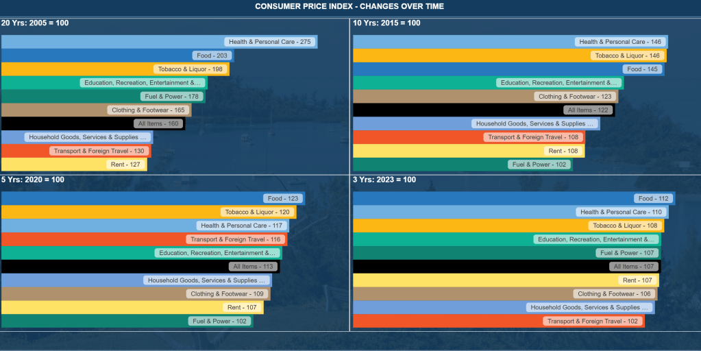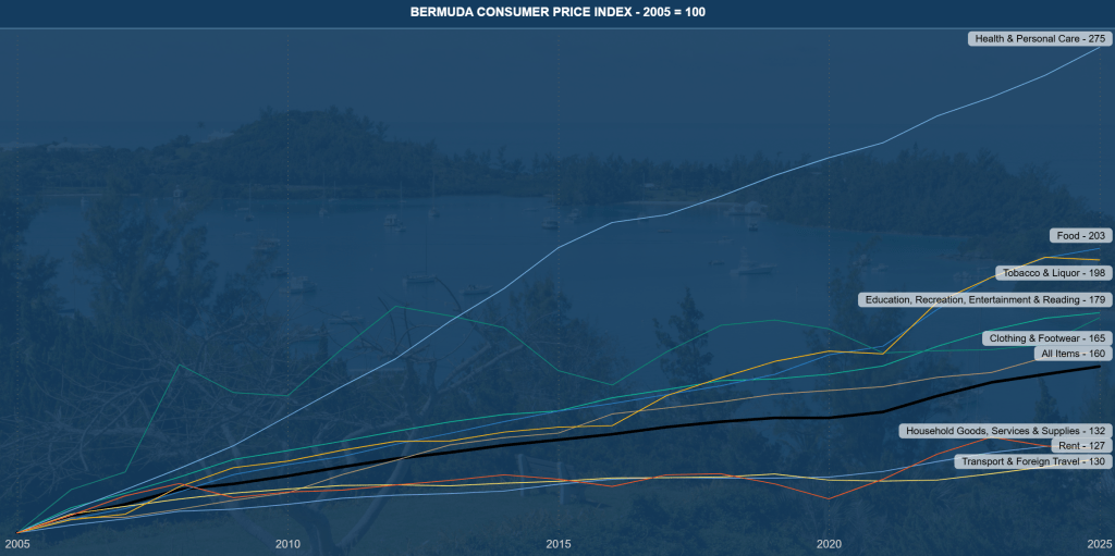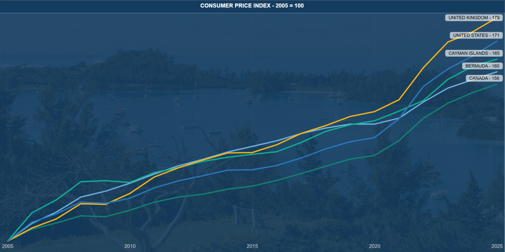- Overall inflation on the island is up 60% since 2005, i.e., something that was $100 in 2005 is now $160
